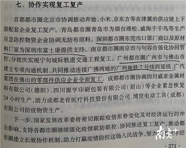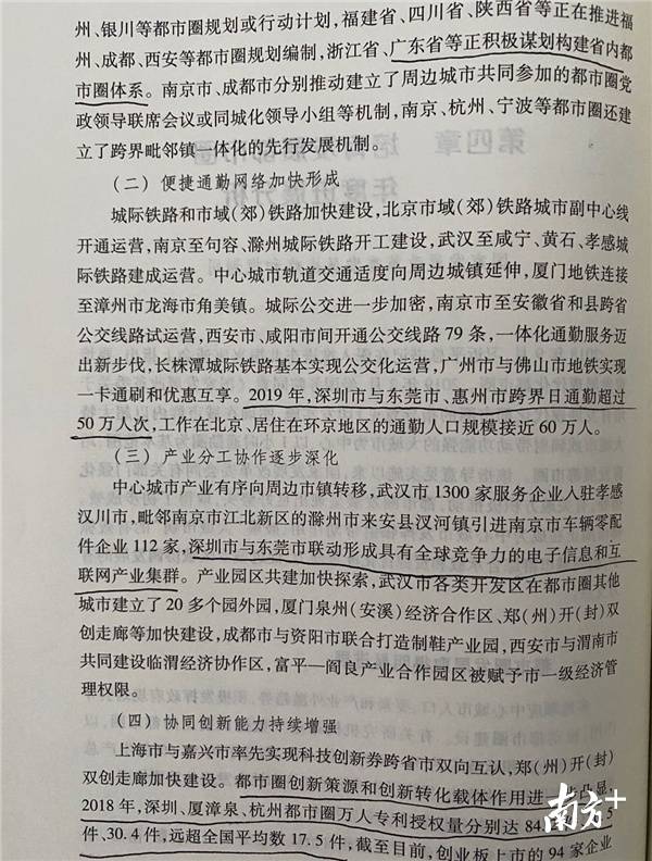 国家发改委发展战略和规划司在关于都市圈建设进展方面提到,广东省正积极谋划构建省内都市圈体系。在构建便捷通勤网络方面,广州市与佛山市地铁实现一卡通刷和优惠共享。2019年,深圳市与东莞市、惠州市跨界日通勤超过50万人次。在产业分工协作方面,深圳市与东莞市联动形成具有全球竞争力的电子信息和互联网产业集群。