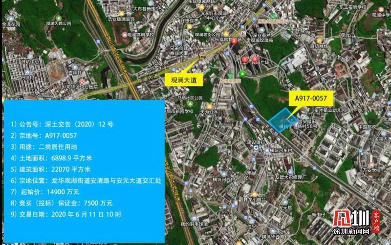 龙华A917-0057宗地位于龙华区观湖街道安清路与安元大道交汇处,土地用途为二类居住用地,起始价为1.49亿元,土地面积为6898.9平方米,建筑面积为2.21万平方米。该宗地建设住宅类型为出售的人才住房,项目建成后出售的人才住房销售基准售价不高于2.97万元/平方米,最高售价不高于3.12万元/平方米。
