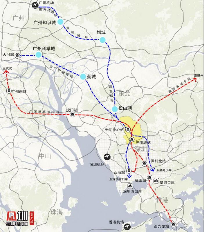 光明科学城区域交通示意图。