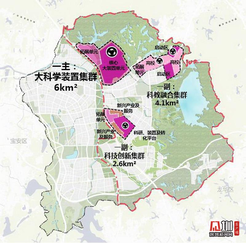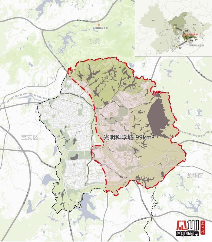 2019年8月18日,国家发布了《中共中央国务院关于支持深圳建设中国特色社会主义先行示范区的意见》,提出以深圳为主阵地建设综合性国家科学中心。市规划和自然资源局地区规划处副处长叶阳介绍,光明科学城北起深莞边界,东部和南部以光明区辖区为界,西部以龙大高速和东长路为界,规划总面积99平方公里,将构建“一主两副”的科学装置集聚区空间布局。