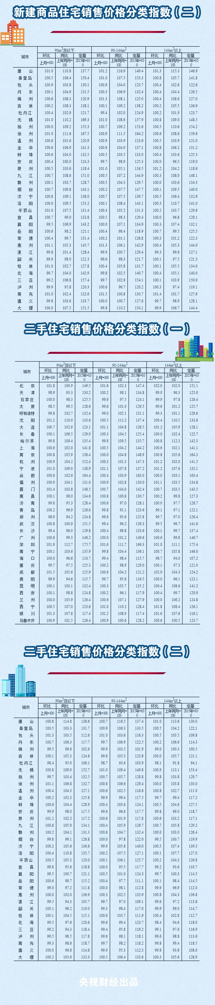 35个三线城市新建商品住宅和二手住宅销售价格环比分别上涨0.7%和0.3%,涨幅比上月均扩大0.1个百分点。