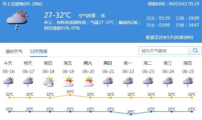 见圳客户端·深圳新闻网2020年06月16日讯 16-17日多云,有(雷)阵雨,16日气温27-32℃;18-20日晴天间多云,局部有雷阵雨;21-22日多云,有雷阵雨,局部大雨到暴雨。