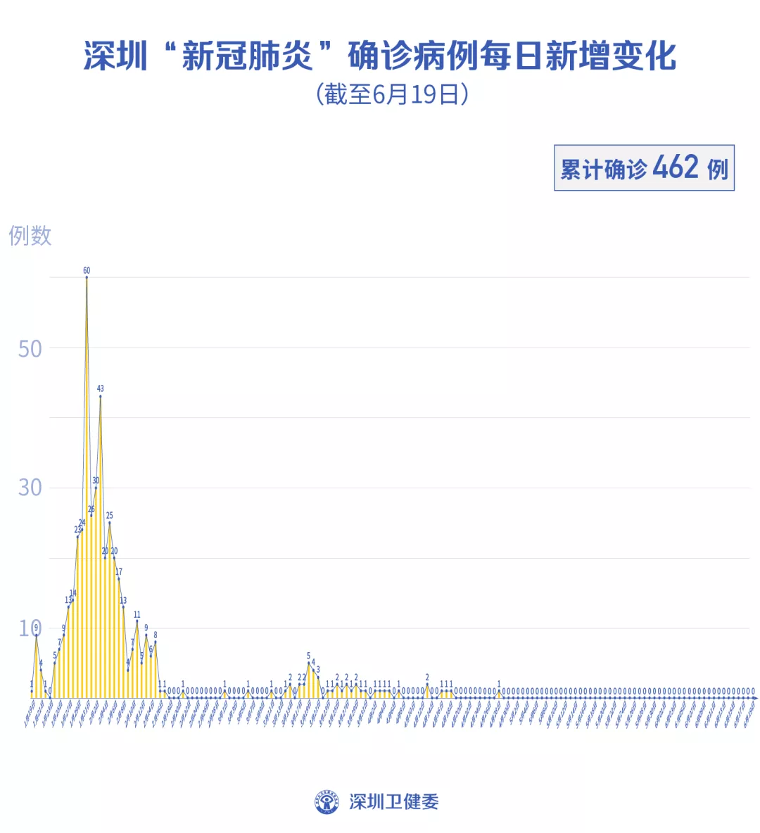 截至6月19日24时,深圳累计报告新冠肺炎病例462例。