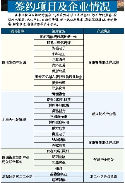 26个签约公司中,10家为高端智能制造产业,8家为新兴技术产业,4家为创新产业研发,2家为高端智能制造产业,2家为旧工业区升级改造,这些将为航城的建设和发展注入新动力。