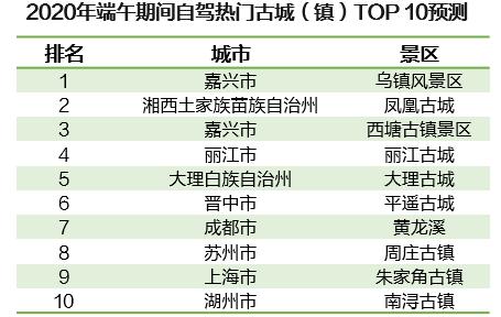 根据高德地图交通大数据预测,端午期间全国热门自驾古城(镇)TOP10一半分布在长三角区域,预计嘉兴-乌镇风景名胜区自驾热度最高,其次是湘西-凤凰古城以及嘉兴-西塘古镇景区。