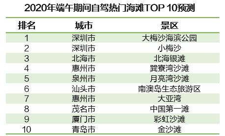 2020端午出行预测:深圳大、小梅沙成全国自驾最热门海滩景区