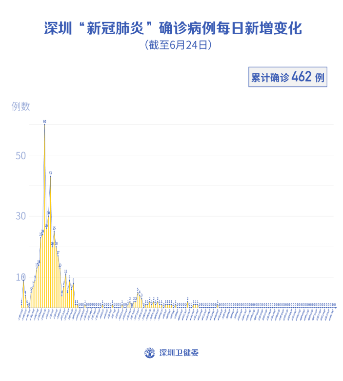截至6月24日24时,深圳累计报告新冠肺炎病例462例。