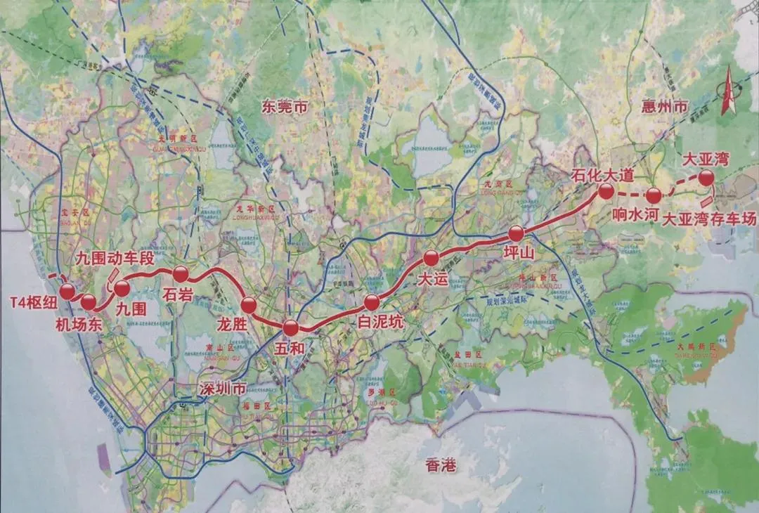 龙岗至大鹏支线:起自龙岗,经坪山至大鹏新区,线路与深惠城际、深大城际衔接。