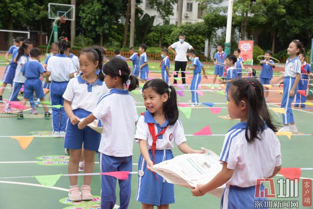 见圳客户端·深圳新闻网2020年7月1日讯 (记者 曹园芳)开心、好玩、有趣、有意义……这么多美好的词语从一群孩子口中说出来,你觉得会是一个什么样的活动呢?这是福田区华新小学在6月30日举行的“华新小学期末评价课程‘绿韵笔架·趣建自然乐园’”活动,在学校操场上、教室里,一二年级的同学们欢欣鼓舞,满脸喜悦。