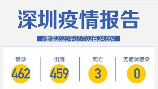 截至7月1日24时,深圳累计报告新冠肺炎病例462例。