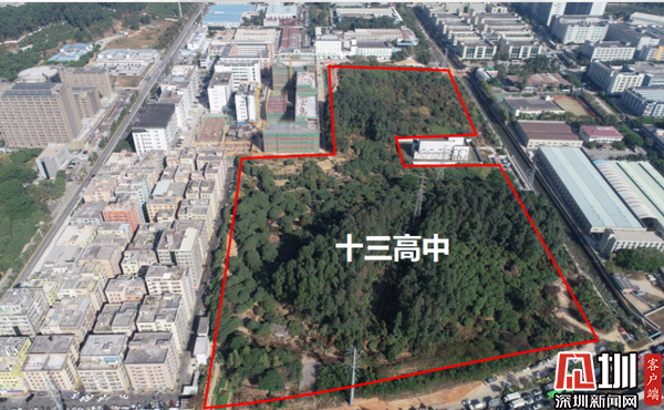 深圳第十三高级中学选址在宝安区燕罗街道的燕川社区,用地面积为87085.29平方米,校区总建筑面积为110000平方米,预设60个班级,共3000个学位。该校的设计构想是为广大学生打造一条充满未知与可能性的新奇“旅途”。