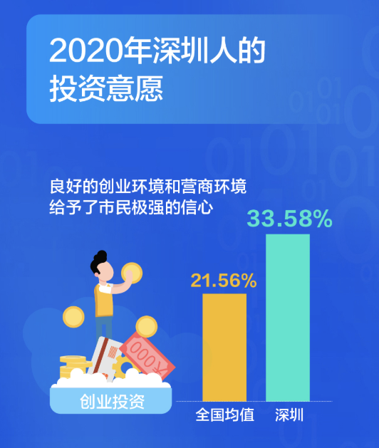 有了钱,深圳人会投资什么?大调查发现,深圳人在创业投资的选择占比高达33.58%,比全国平均水平要高出12个百分点,良好的创业环境和营商环境给予了市民极强的信心。从不同年龄段来看,创业投资意愿最高的是36-45岁的群体,不同行业中,服务业和金融业创业投资的意愿更高一些。
