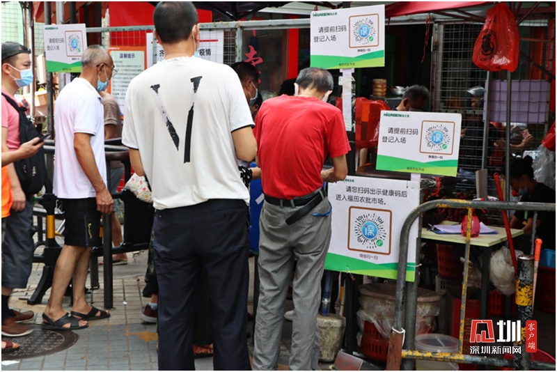 进入福田农批市场需出示健康码,测量体温。