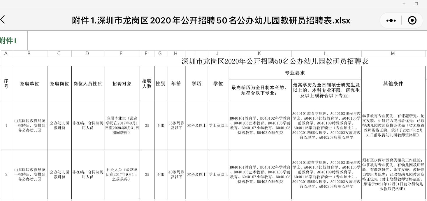 ■附:深圳市龙岗区2020年公开招聘50名公办幼儿园教研员招聘表