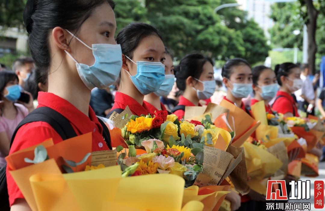 见圳客户端·深圳新闻网2020年7月8日讯(见圳客户端·深圳新闻网记者 晏语)7月8日下午5点,随着外语科目终考铃声响起,2020年全国普通高考顺利结束。深圳高级中学考点门外人潮涌动,不少家长抱着鲜花,翘首以盼,举着相机准备记录孩子迈出考场的那一刻。十年寒窗苦读,这些00后的少年们也终于完成了这场迟到了一个月的学业大考。
