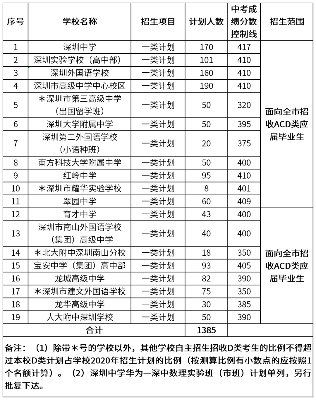 为推动深圳市优质民办高中进一步提升办学水平和质量,今年,深圳市教育局将民办普通高中自主招生也统一纳入普通高中自主招生计划内统筹安排。其中,新增自主招生一类计划的民办学校是:福田区的深圳耀华实验学校、南山区的北大附中深圳南山分校和龙岗区的深圳市建文外国语学校;新增自主招生二类计划的民办学校是:盐田区的万科梅沙书院、宝安区的深圳市崛起实验中学和坪山区的深圳市龙翔学校。