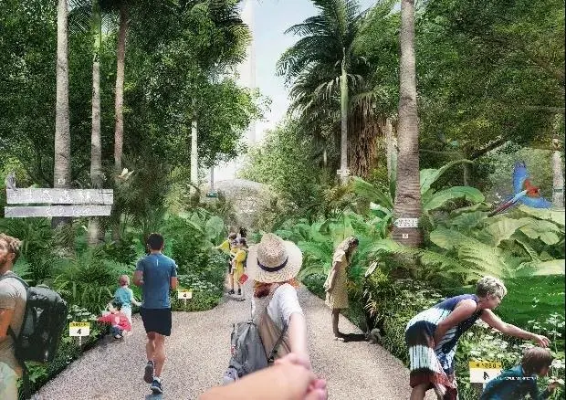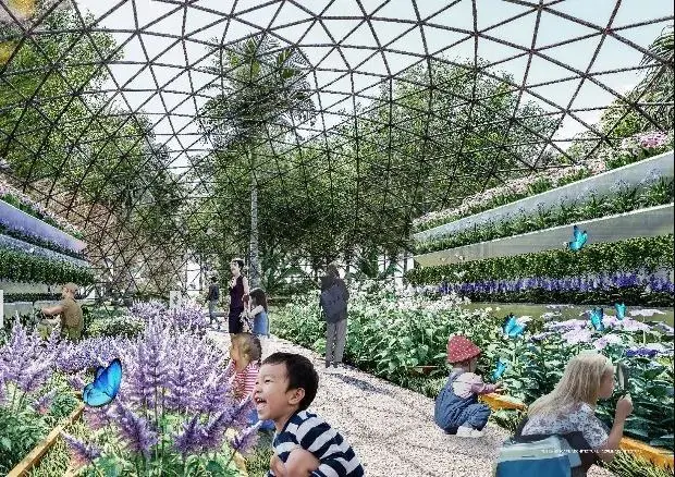 为生态森林公园,它模拟深圳的山地森林生境,营造大湾区山地森林的典型生境群落,在城市中心营造出自然教育与沉浸式学习的环境,设置生态教室、植物温室等,形成户外自然科普中心和自然主题为主的艺术花园。