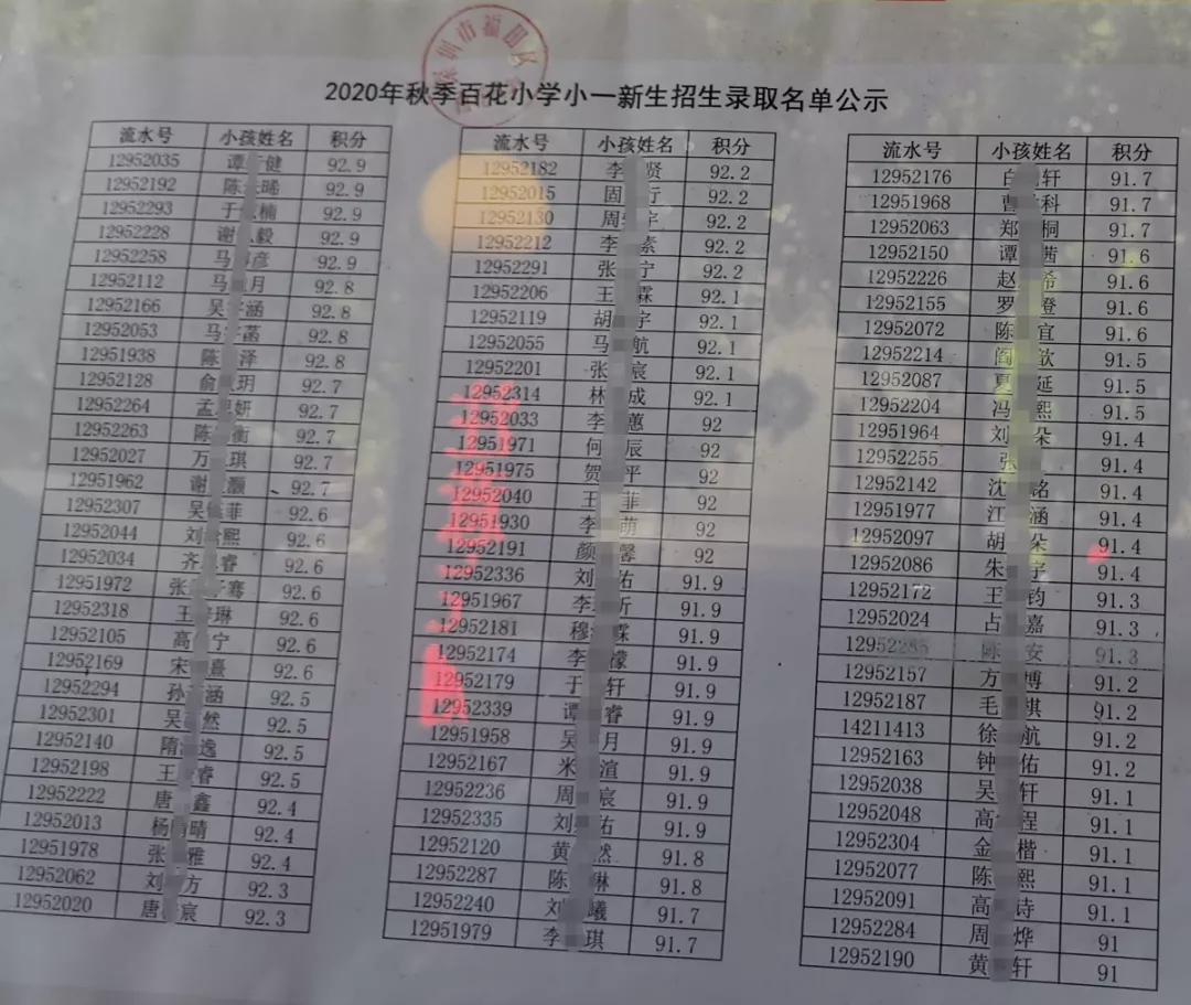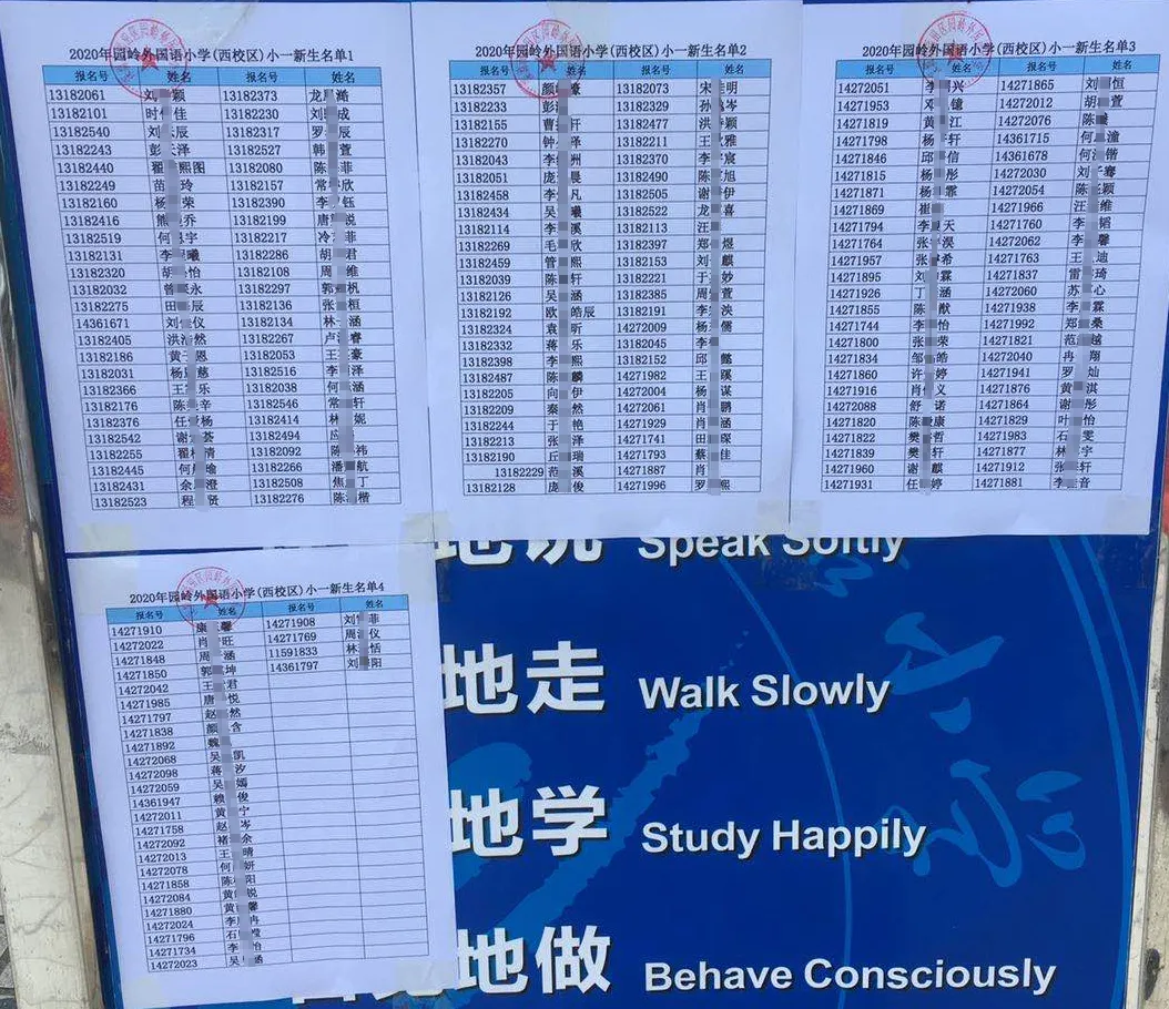 小一家长们关心的2020年公办小一年级新生报名积分录取名单今天开始放榜啦。