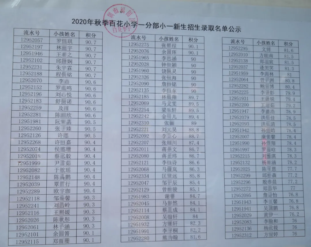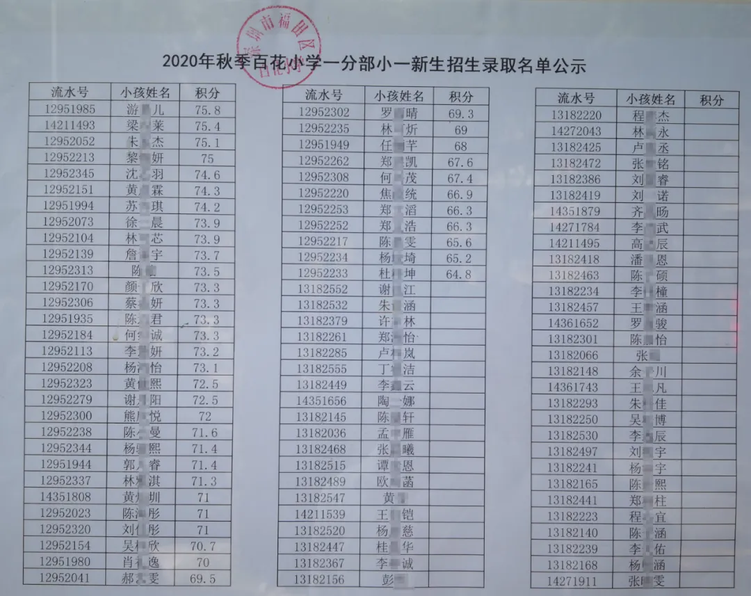 2020年福田区公办小一新生录取名单来了,部分学校最低录取积分曝光