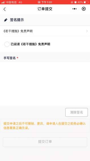 客户完成补贴申领信息填报后,平台将进一步汇总客户申报信息,经确认无误后,可查看并勾选免责声明,并手写签名完成最终申报信息确认。