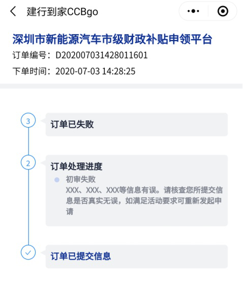 如客户初审、终审失败,重新进入“深圳市新能源汽车市级财政补贴申领平台”发起申请即可。
