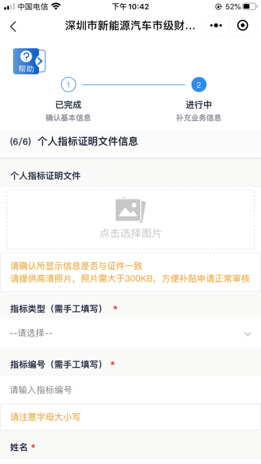 客户须通过平台上传个人指标证明文件,并手工填写指标类型、指标编号等信息后,即完成申报信息填报。