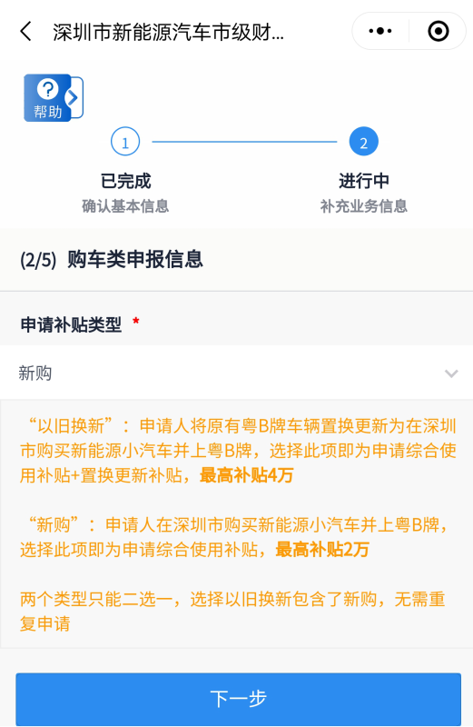 客户只需选择一种补贴类型,“新购”和“以旧换新”两种类型无需重复申请。