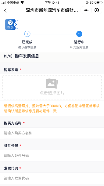客户须通过平台上传购车发票,平台通过OCR技术可识别发票代码、发票号码、开票日期等信息,并通过平台自动反显。