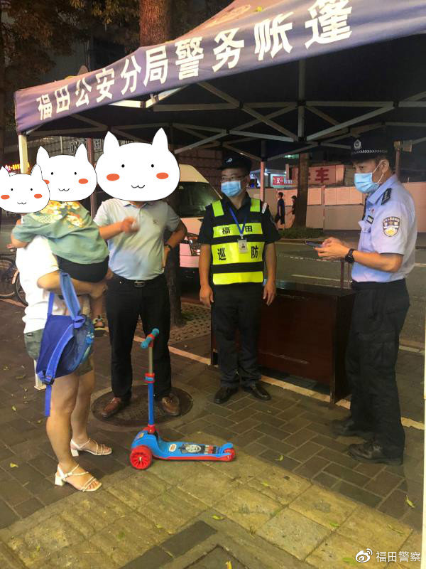 近日,深圳市公安局福田分局八卦岭派出所巡段民警刘臣利刚处理完一起纠纷,就接到派出所前台指令称:在驿站附近有一名走失小孩需要帮助。接到指令后,巡段民警刘臣利立即前往现场。
