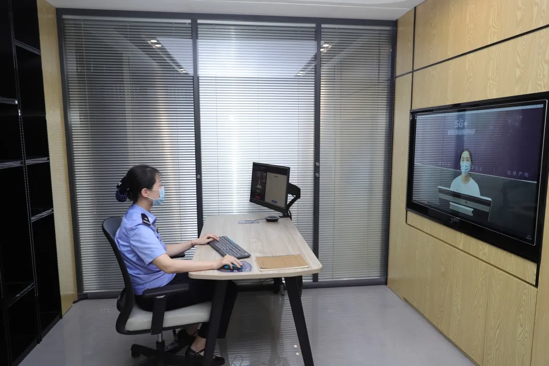 ▲民警通过5G自助报警终端向报警人了解情况