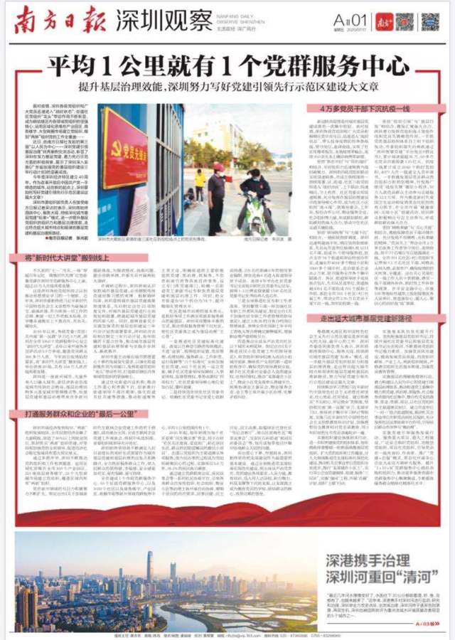 深圳市委组织部负责人在接受南方日报记者采访时表示,深圳将始终围绕中心、服务大局,持续深化城市基层党建“标准+”模式,进一步提升基层党组织的组织力和基层治理效能,走出符合超大城市特点和规律的基层党建和基层治理新路径。