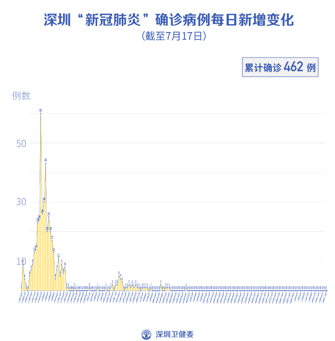 截至7月17日24时,深圳累计报告新冠肺炎病例462例。