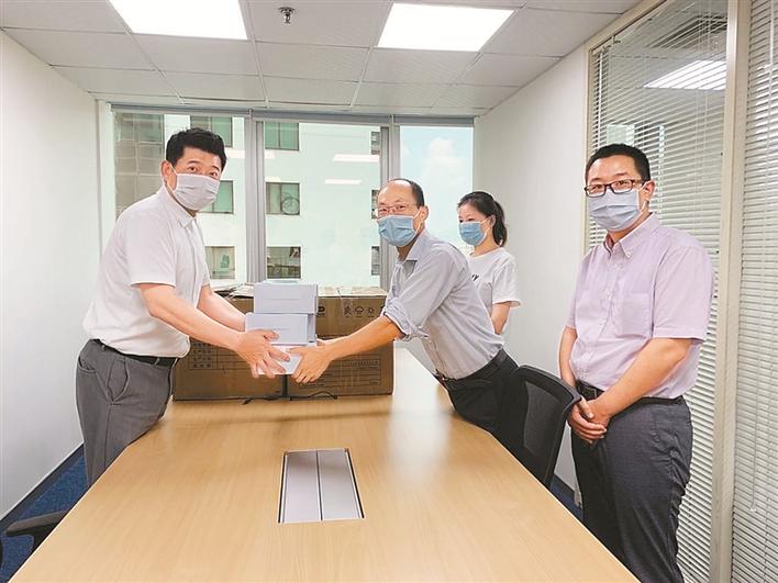 日籍华人(左一)张昊为深圳捐赠口罩。