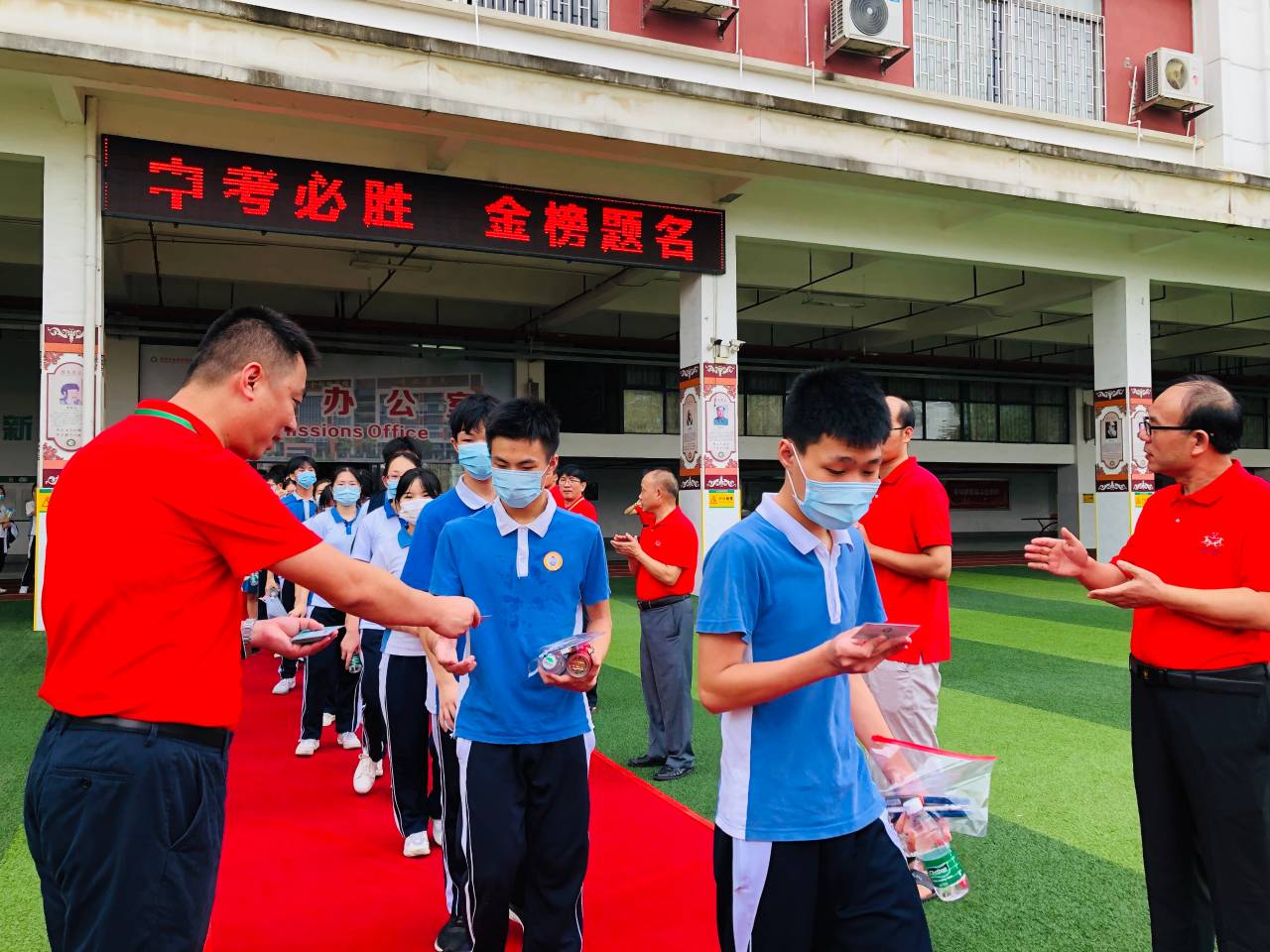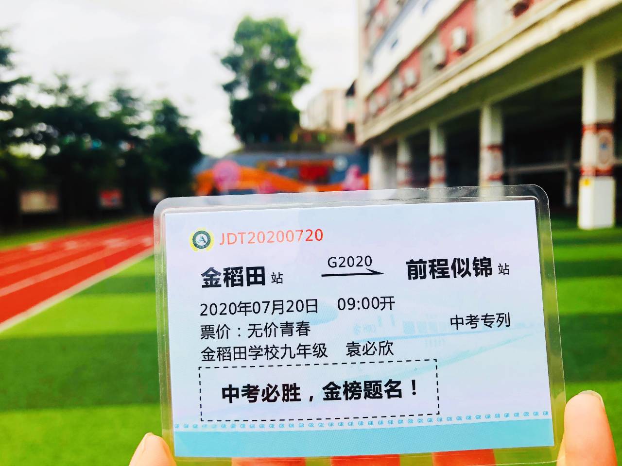 龙岗区金稻田学校的学子们赶往考场前,校长老师们送上了“护考车票”,通往“前程似锦”!目前,学子们在交警的护送下已顺利到达考场。(记者李丽
