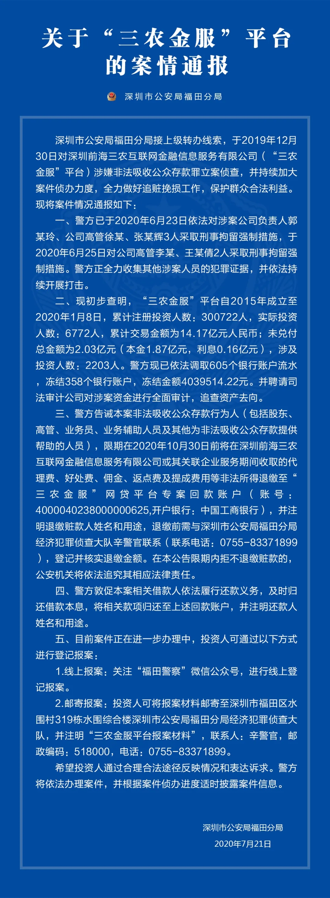 关于“三农金服”平台、“大麦理财”平台的案情通报