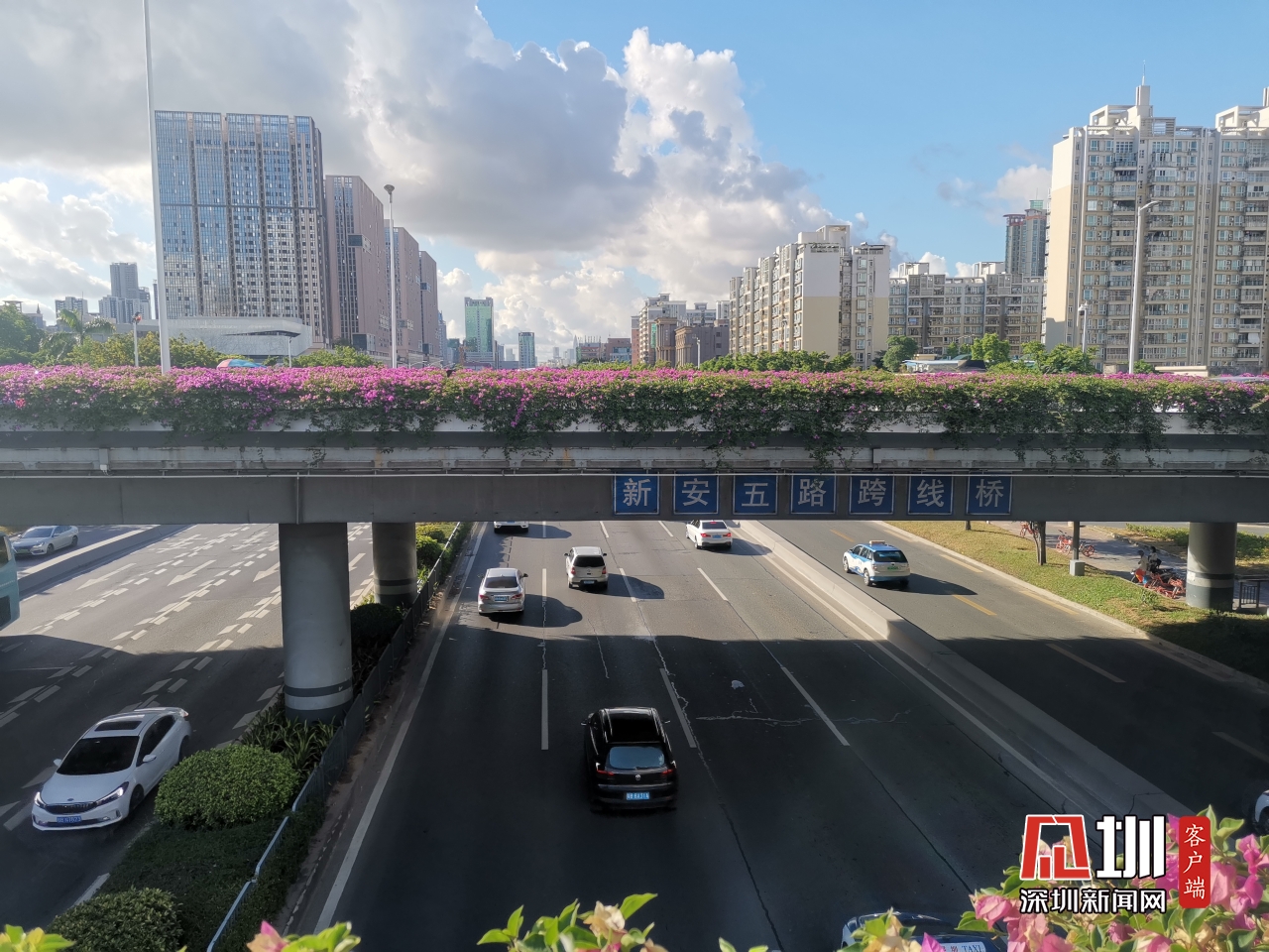 【广深公路】上午8时,记者在位于新安五路和广深公路的天桥拍摄实时交通情况,目前广深公路的车流没有造成拥堵。