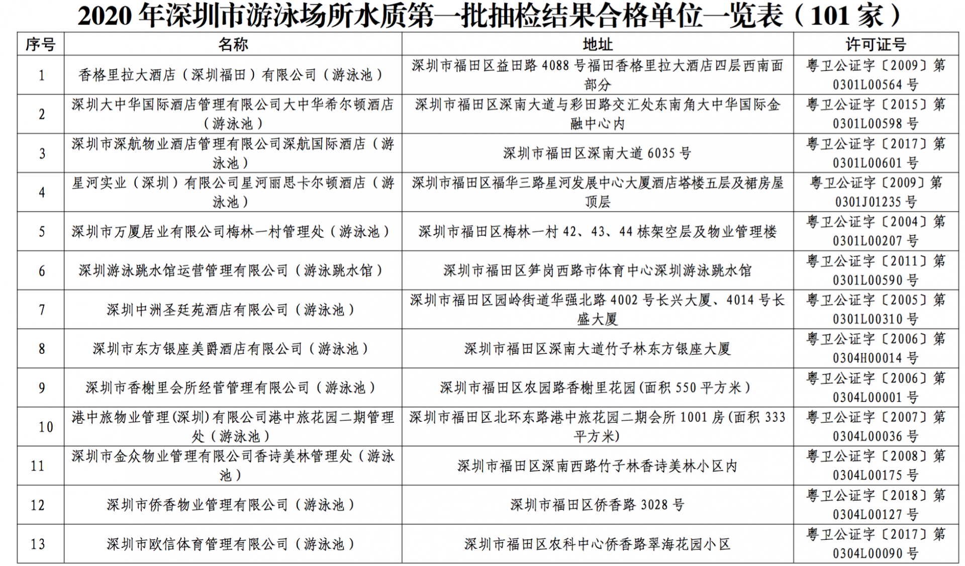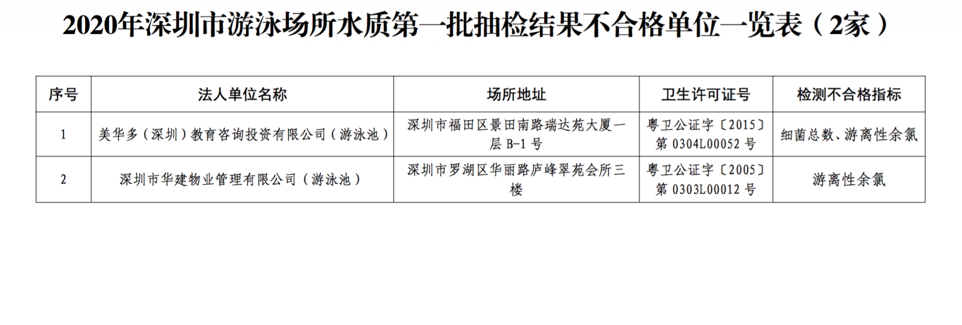 原标题 游泳去?深圳第一批游泳场所水质抽检结果:这2家不合格