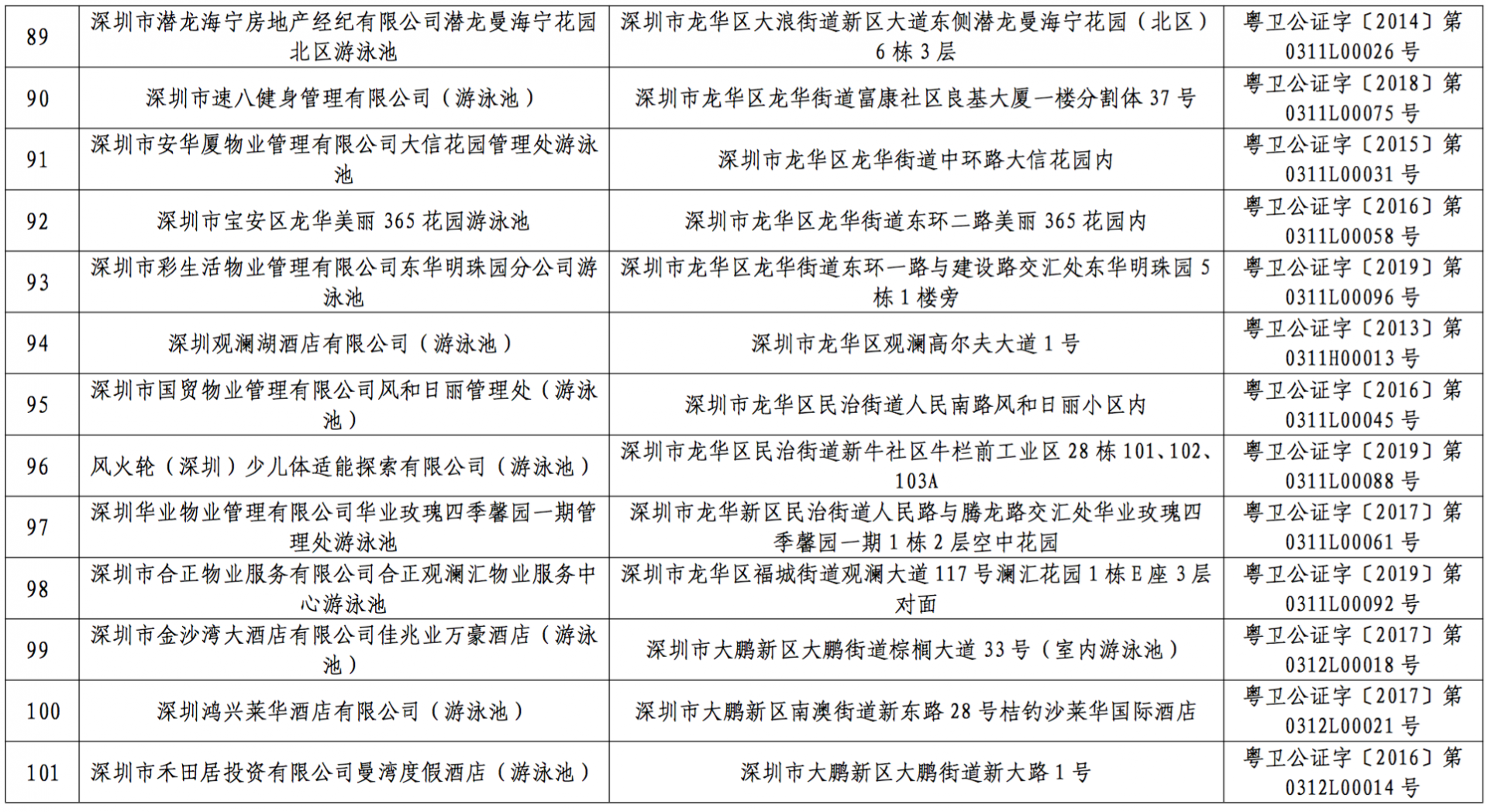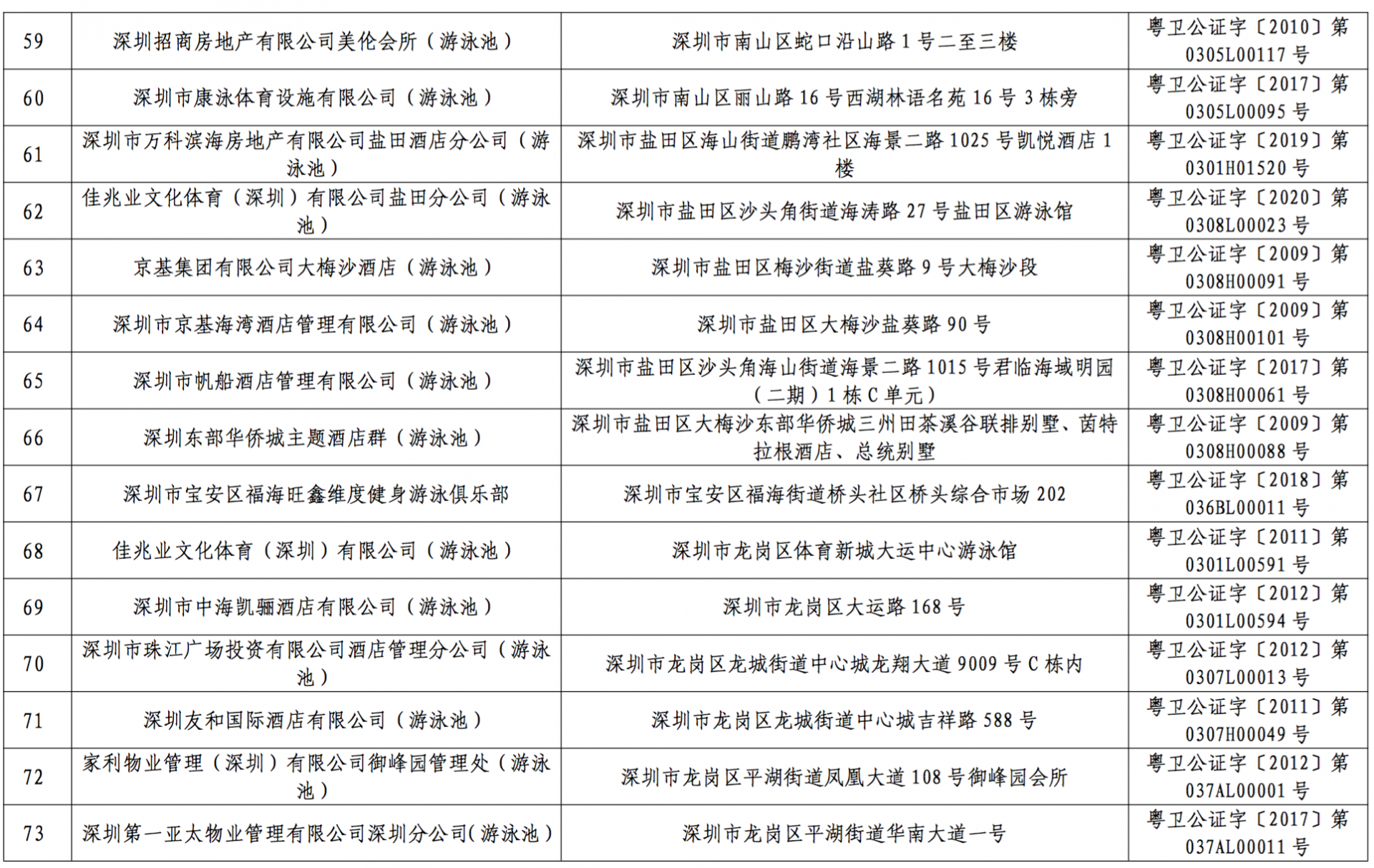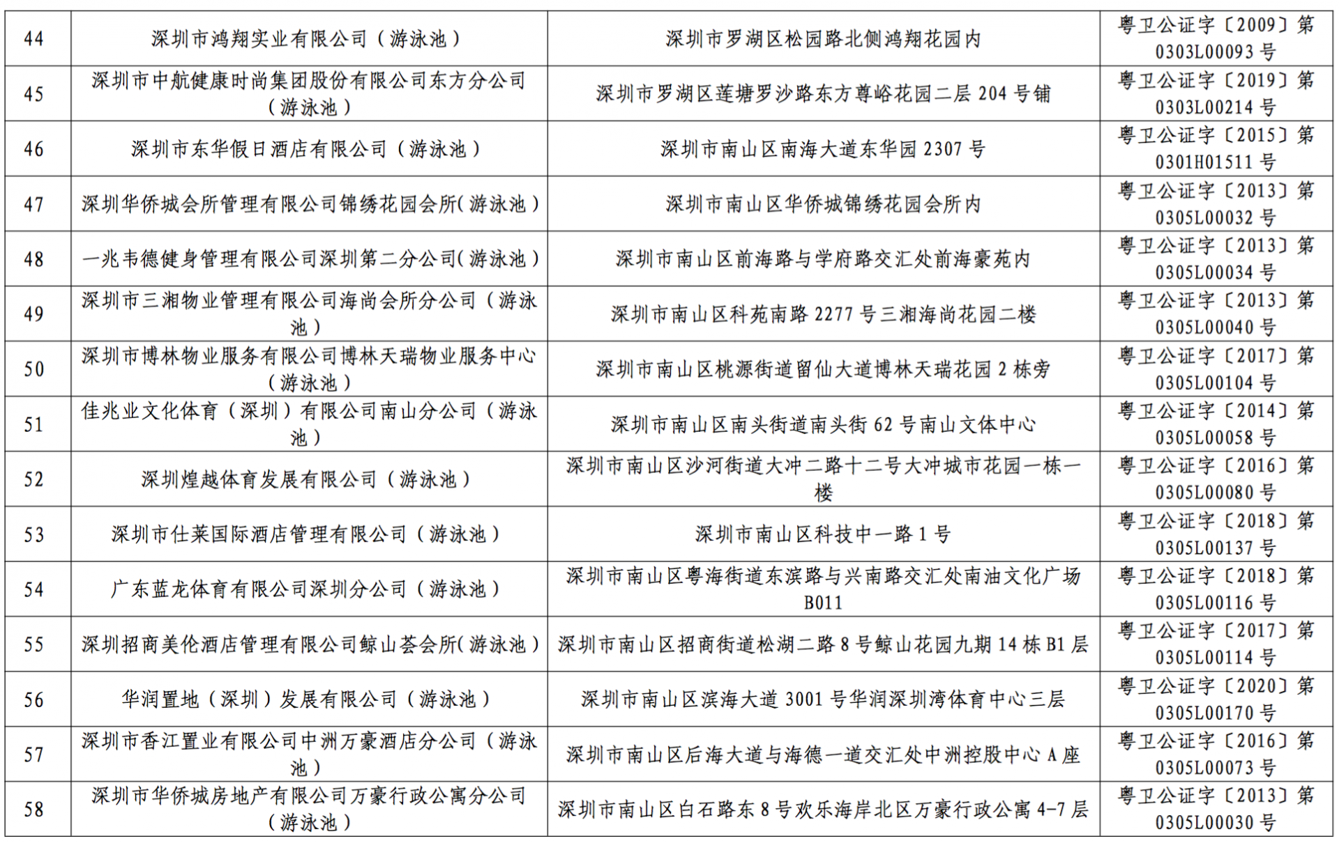 见圳客户端·深圳新闻网2020年7月24日讯(深圳特区报记者 罗莉琼)深圳天气持续晴热,全市(含深汕)高温黄色预警信号生效中,到游泳池游泳的市民逐渐增多。你家附近的游泳池水质合格吗?23日,深圳市卫健委公布今年第一批游泳场所水质抽检结果,抽检游泳场所103家,有2家不合格。