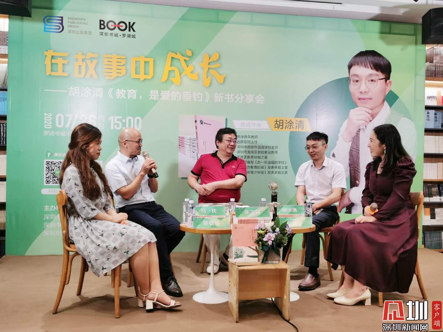 见圳客户端·深圳新闻网2020年7月27日讯(记者 张玲 实习生 王舒蕾)在教育工作者的眼中,教育是什么样的?7月26日下午3点,深圳市百合外国语学校胡涂清老师携新书《教育,是爱的垂钓》做客罗湖书城,与读者朋友们分享了任教经历的暖心故事和独到见解。