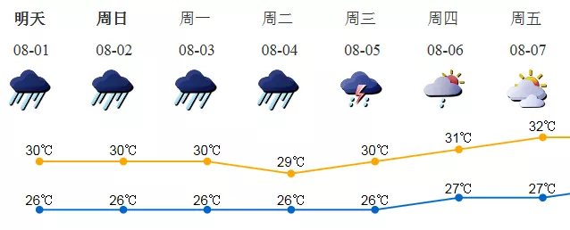 7月31日至8月2日我市有暴雨,东部、南部有大暴雨,沿海、高地和海区最大阵风8-10级。3-5日仍有暴雨,局部大暴雨。