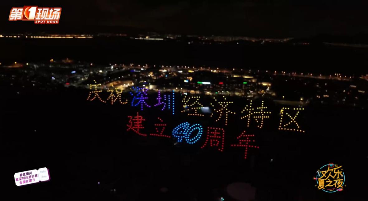作为本次直播的协办单位,深圳世界之窗、深圳锦绣中华·中国民俗文化村、深圳欢乐谷和深圳欢乐海岸,积极配合响应,用最“青春”的玩法吸引最“潮流”的年轻人。直播的最后,恢弘灯光秀、绚烂烟火展、竞速无人机点亮深圳夜空,千架无人机同时升空幻化鹏城美景,变幻出“庆祝深圳经济特区建立40周年”等字样,为深圳献礼。