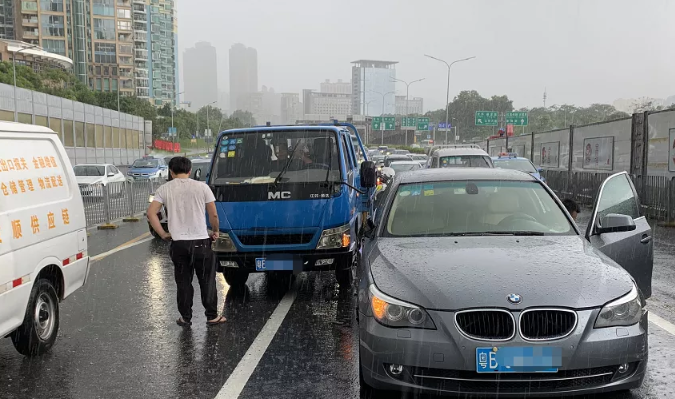 见圳客户端·深圳新闻网2020年8月5日讯 据深圳市气象台,珠江口强回波向东北方向移动,自西向东影响我市,雨量20-40毫米,伴有7级左右阵风,目前全市暴雨黄色和雷电预警信号生效中。图为宝安区茅洲河燕罗段乌云笼罩、风大雨急。(记者王晓婧 摄 )