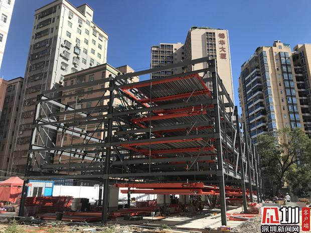 正在施工的羊台新村机械立体车库。