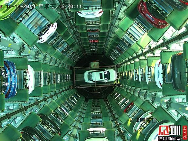 社会资本投资的宝安区人民医院机械立体车库内部。