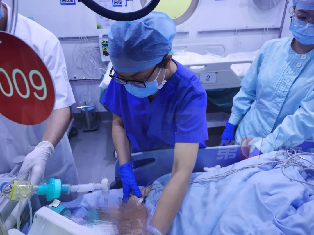 当时人是神智不清的,有频繁的抽搐,考虑这个频繁抽搐,还是跟她心跳骤停之后,大脑缺血、缺氧状态有关系。我们楼下抢救室,很快就给她一个评估全身的状态,再一个就是第一时间,我们就给她紧急安排了高压氧的治疗。