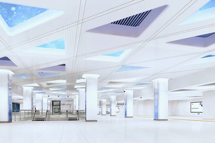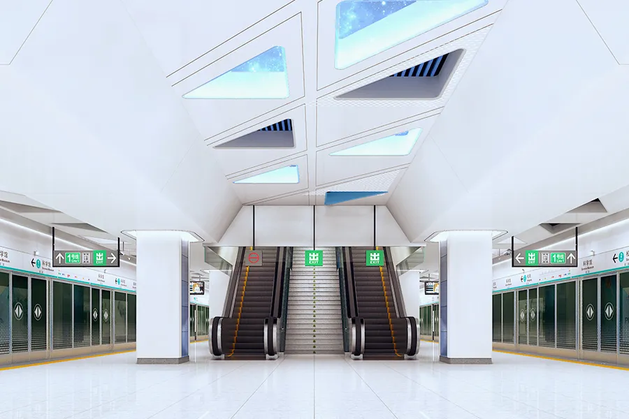 科学馆站位于上步路与深南大道交叉口至滨河大道段,呈南北向布置。与1号线通道换乘,车站为地下三层单柱双跨钢筋混凝土框架结构,共设出入口6个:E、F,物业口1、2、3、4。此外,与1号线换乘通道。