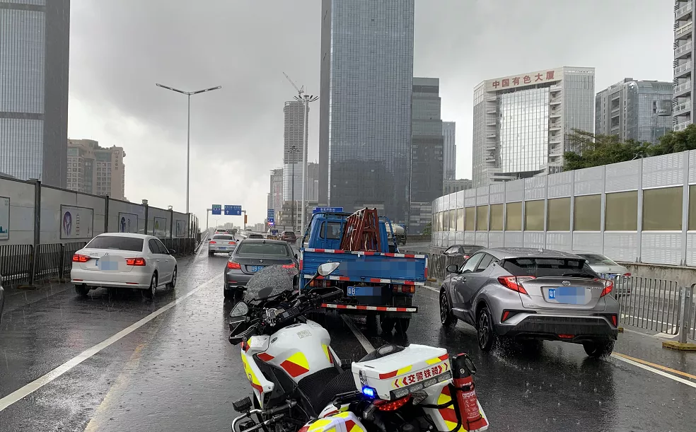 深圳交警立即引导两车转移到不影响交通路段,同时提醒过往车辆注意避让。目前,涉事司机已报保险处理。