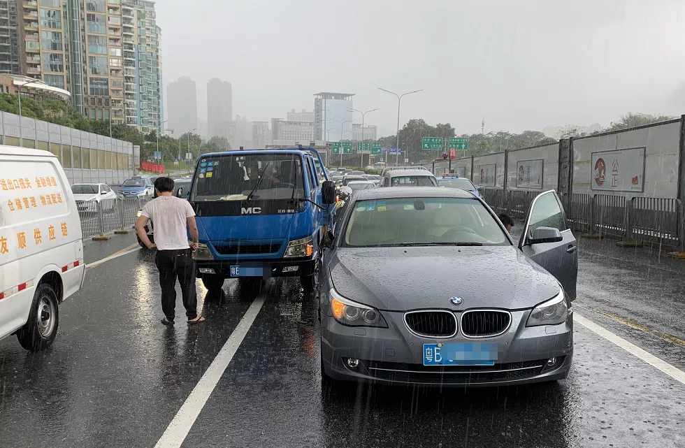 两车雨中擦碰,交警处理