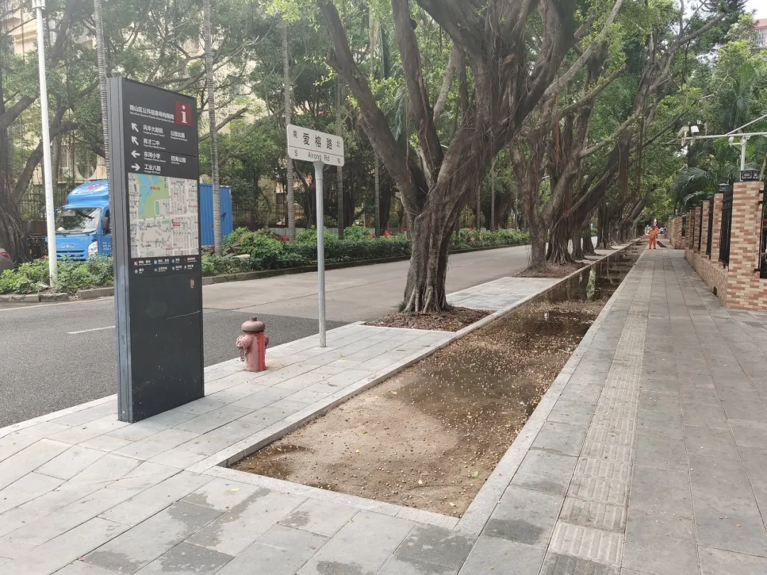 据深圳市交通运输局南山管理局相关负责人介绍,目前爱榕路(荔园路—东滨路段)两侧人行道正在进行相关提升改造工程。