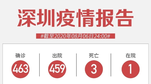截至8月6日24时,深圳市累计报告新冠肺炎确诊病例463例。目前在院1例。